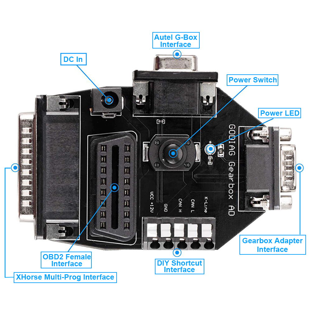 5. GODIAG Gearbox Adapter includes a DIY OBD2 CANBUS K-Line connection. It also supports DIY OBD2 Bench setups. |