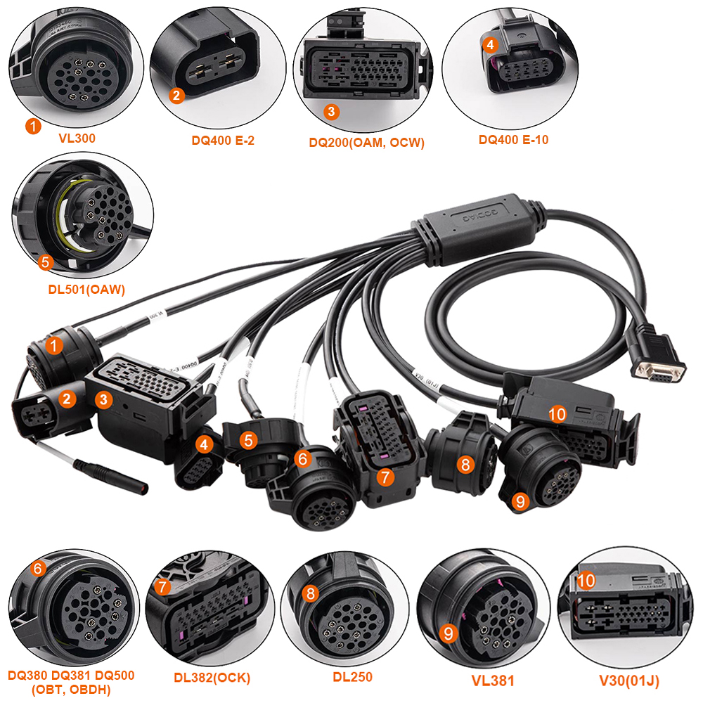 GODIAG Gearbox Cable 9-In-1 Set for VAG V30 / DQ200 / DQ250 / DQ380 / DQ381 / DQ400E / DQ500 / DL382 / DL501 / VL300 / VL381.