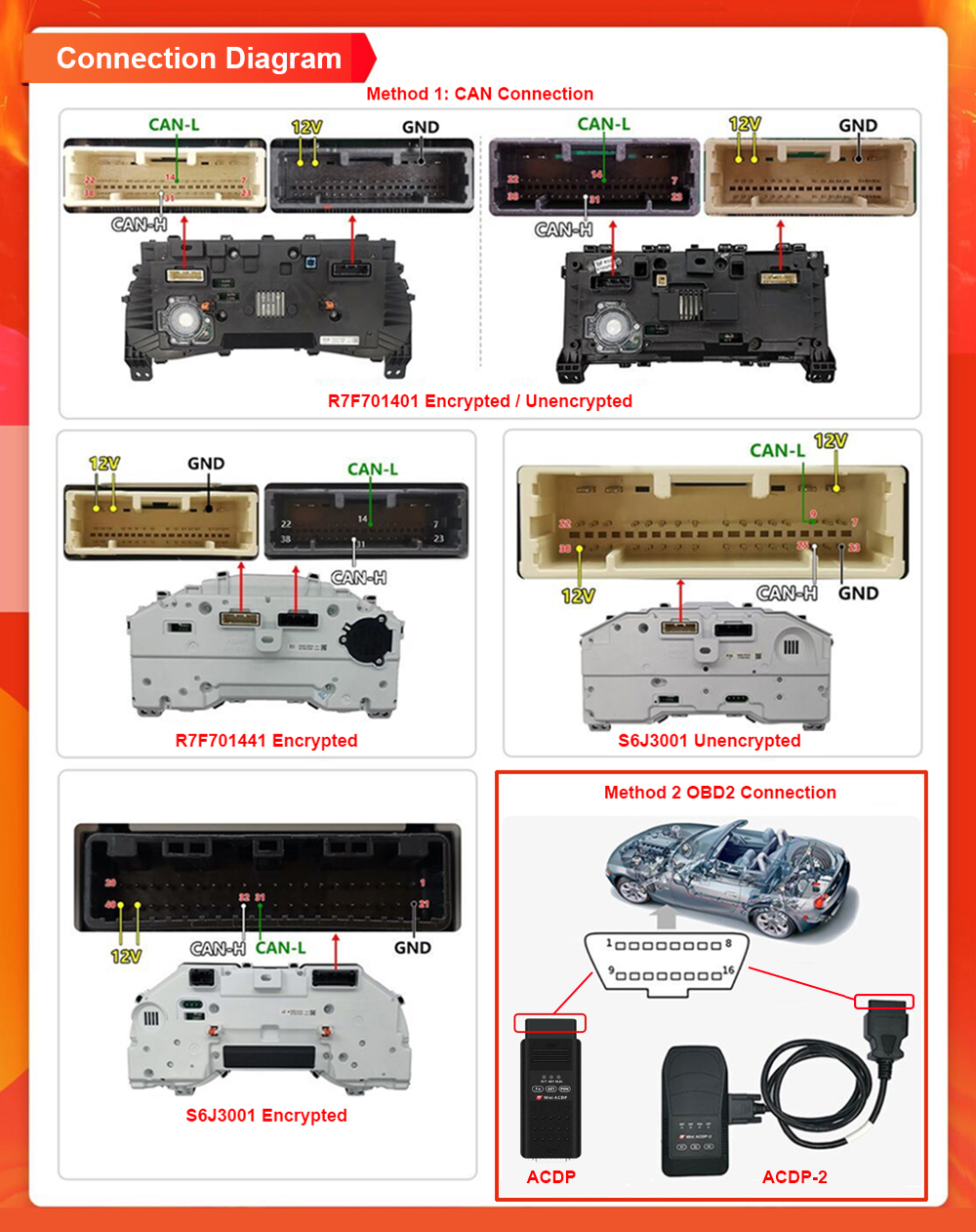 1. Support Toyota S6J3001 encrypted/unencrypted chips instrument mileage correction via OBD/CAN method.
