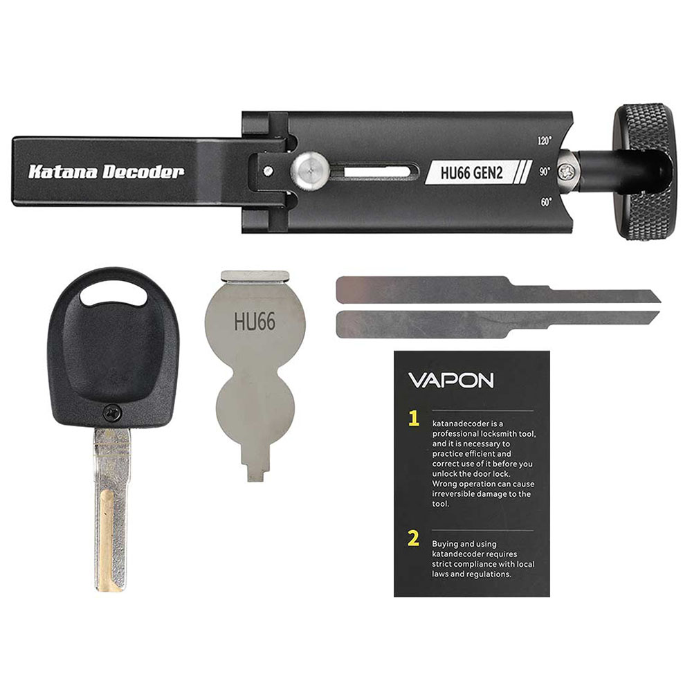 VAPON Katana Decoder HU66 Gen2 Auto Pick and Decoder is a quick opening tool for car locksmiths, which can be used to open HU66 car doors. The innovation of the tool is to make the uses as dependent on the tool as possible. It only needs left and right vibrations, and it can open the lock quickly and read the lock easily at the same time. You do not need to invest time in learning complex metrics and using complexity, it will help you solve problems instantly when you get them.