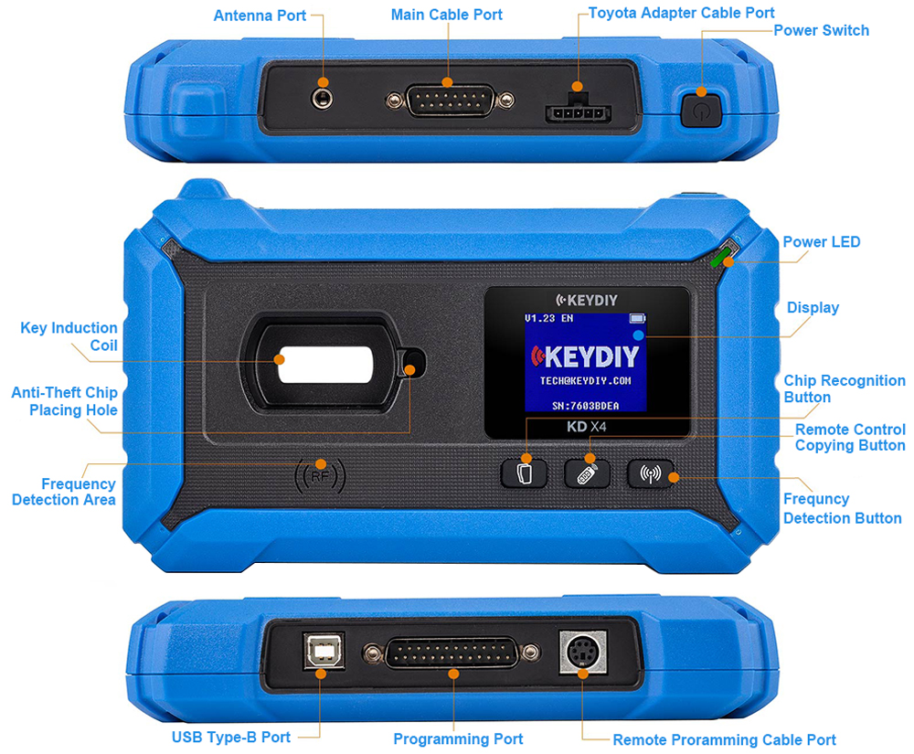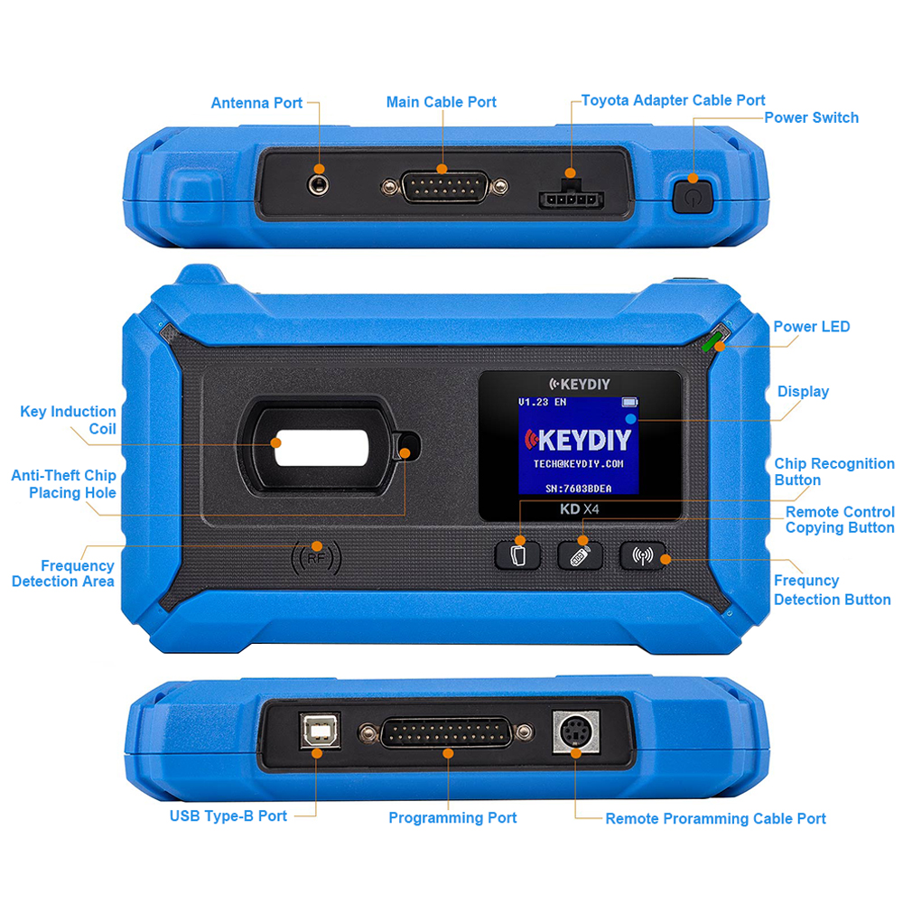 KEYDIY KDX4 Key Programmer is a professional and advanced device for car locksmiths. KD-X4 integrates recognition, generation, copying, programming, matching. KEYDIY KD-X4 Key Prog can be operated independently, or connected to tablets, mobile phones, and PC software in multiple free modes.