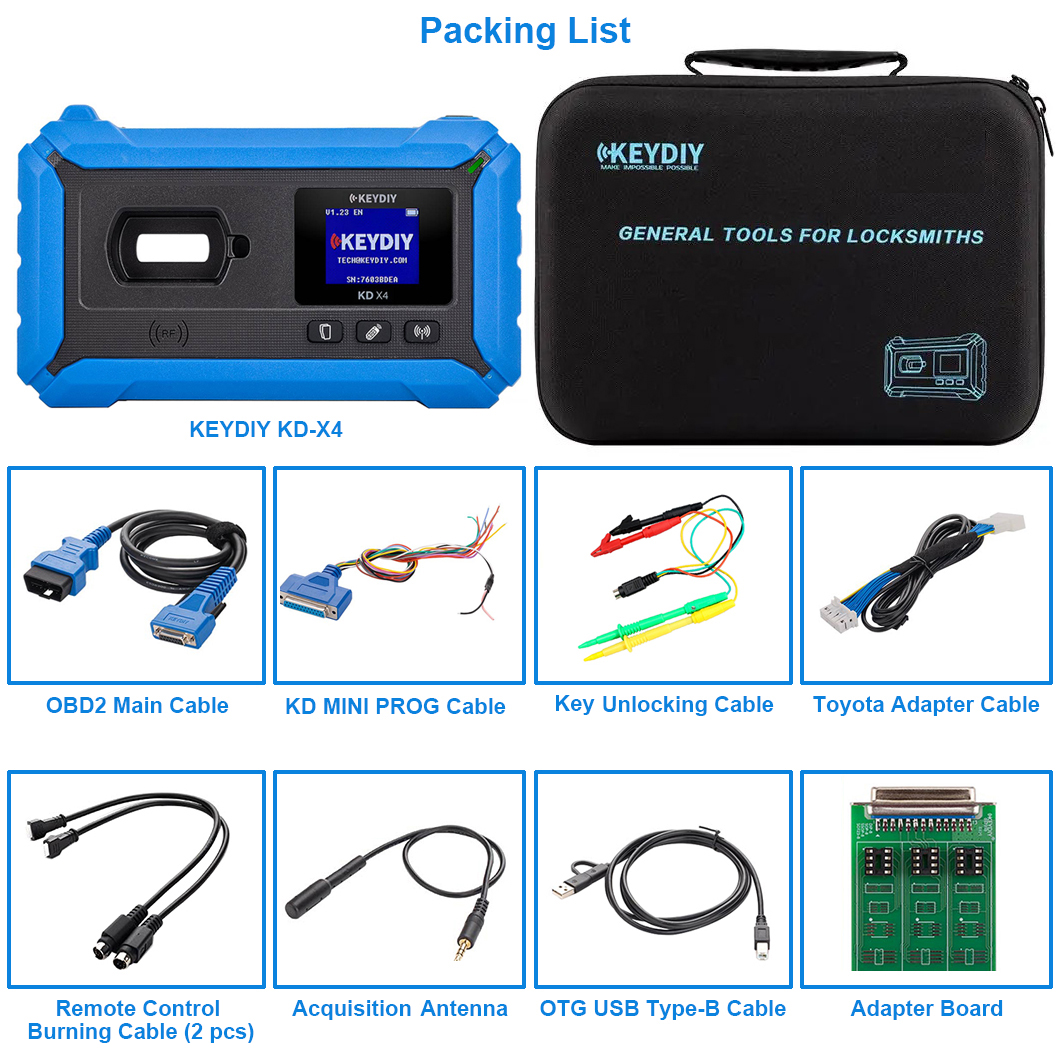 KEYDIY KD-X4 Key Programmer has become a professional device for locksmith with its simple operation, stable performance and wide car coverage.