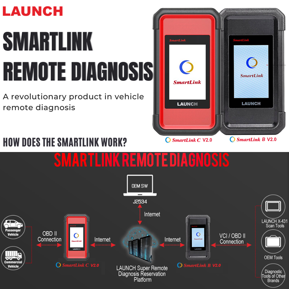 Launch SmartLink Remote Diagnostics System is a newly developed powerful service system dedicated to remote vehicle diagnosis and service. In this system, SmartLink B (Business), as a SmartLink Service Provider, can accept remote repair orders issued by SmartLink C users via SmartLink Service Platform.