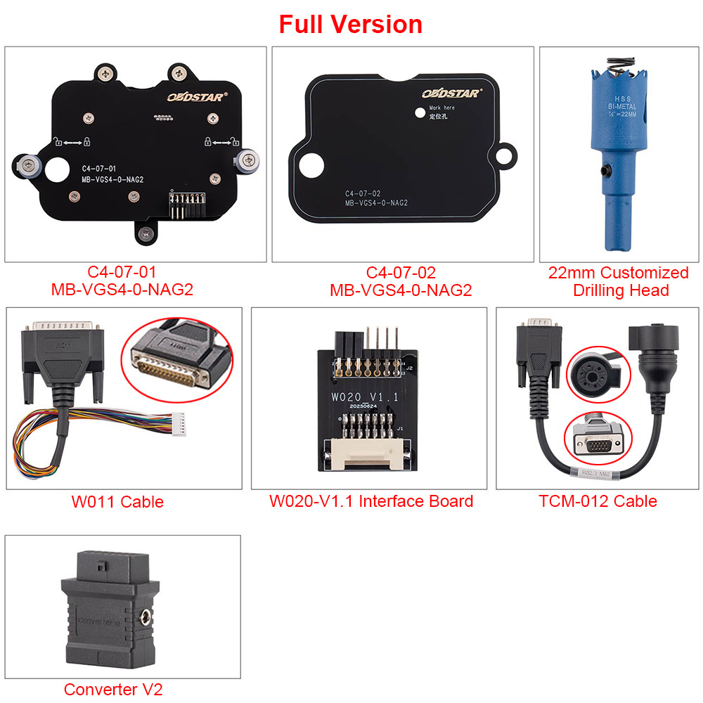 OBDSTAR C4-07(MB-VGS4-0-NAG2) Adapter Kit Full Configuration with TCM-012 and Converter V2 Adapter.