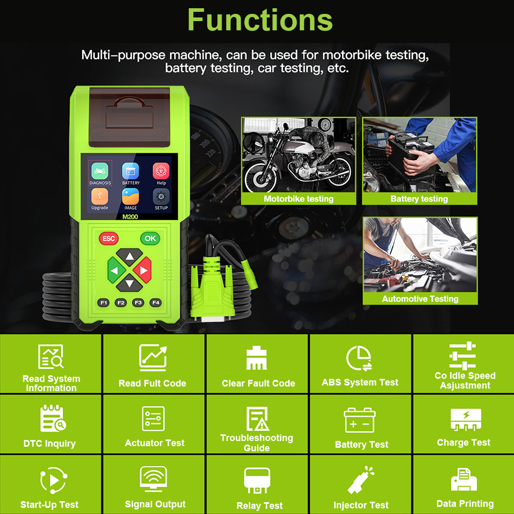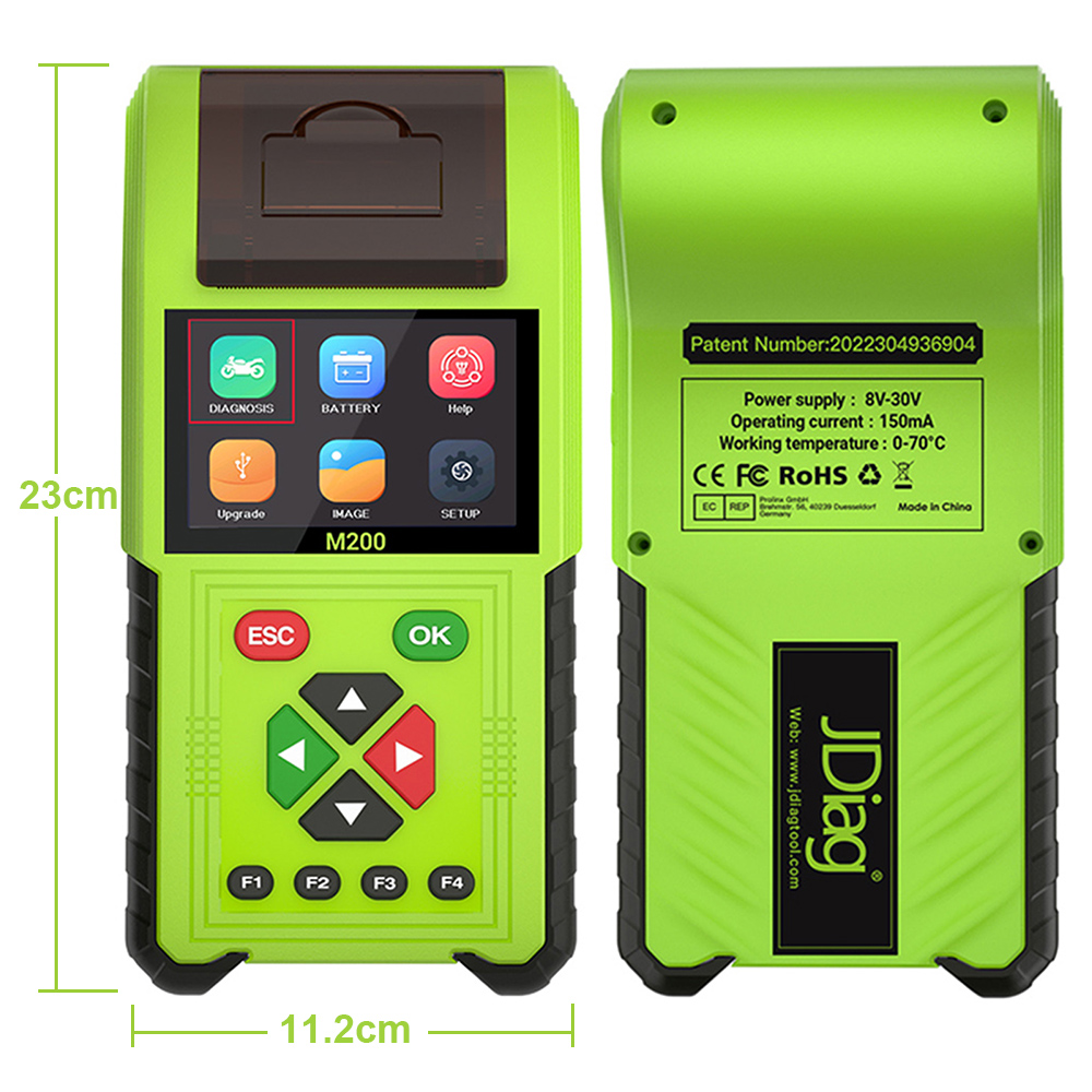 JDiag M200 Full Version Handheld Motorcycle Diagnostic Tool. Dual System Motorcycle Tester + Professional Battery Tester.