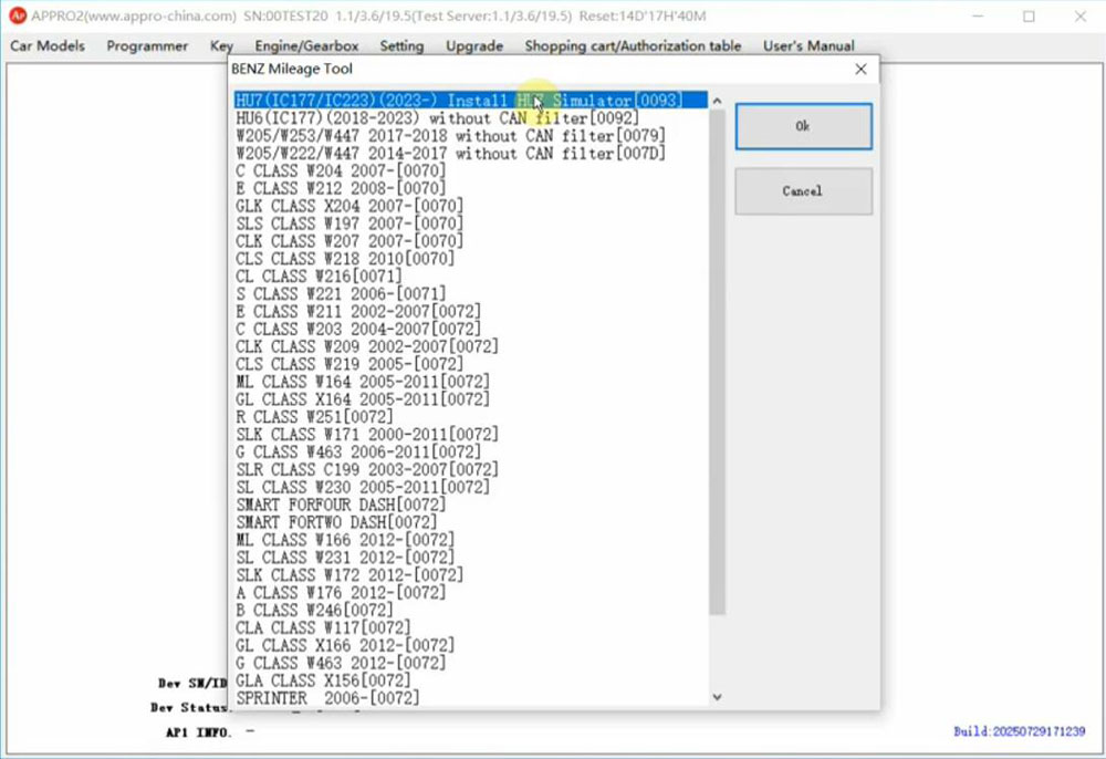 APPRO2 Programmer adds Mercedes Benz HU7 Instrument R7F701529 Mileage Correction in July 2025.